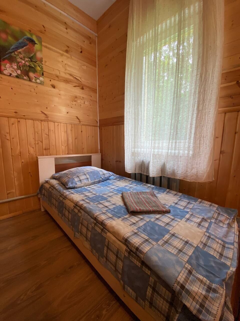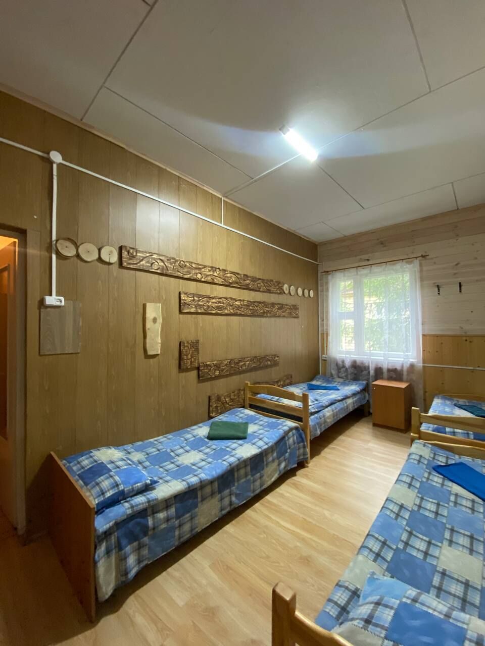 На базе отдыха имеются 4 домика вместимостью до 10 человек. Дома №7, 8, 9 располагают 3 жилыми и общей комнатой, а дом №10 – 4 жилыми комнатами.